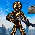 1、一火柴人绳索英雄款充满火柴人风格的3D动作游戏,英雄们可以使用强大的武器库和特殊技巧升级,保护公民免受邪恶克隆人的侵害。