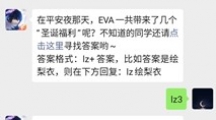 快来参加,《龙族幻想》微信公众号答题领奖活动来啦,关注微信公众号即可答题领取奖品,有时间的小伙伴赶紧来答题啦!今天的题目是“在平安夜那天,EVA一共带来了几个“