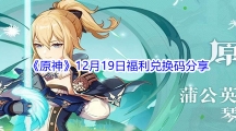 琴这个奶妈是比较强大的,可以说是六星战士,你们一定要给这个角色刷出最好的圣遗物。那么2021原神12月19日福利兑换码都有哪些呢?下面小编给大家详细介绍下,还不