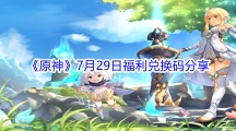 原神这个游戏里面有着好多的角色,你们可以从中选择自己喜欢的角色,培养角色还是需要时间的。那么2021原神7月29日福利兑换码都有哪些呢?下面小编给大家详细介绍下