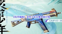 灵符少年全套皮肤是比较多的,有着ump45-灵符少年、98K-灵符少年、aug-灵符少年、灵符少年头盔、灵符少年背包、灵符少年背包挂件和灵符少年降落伞。那么和平